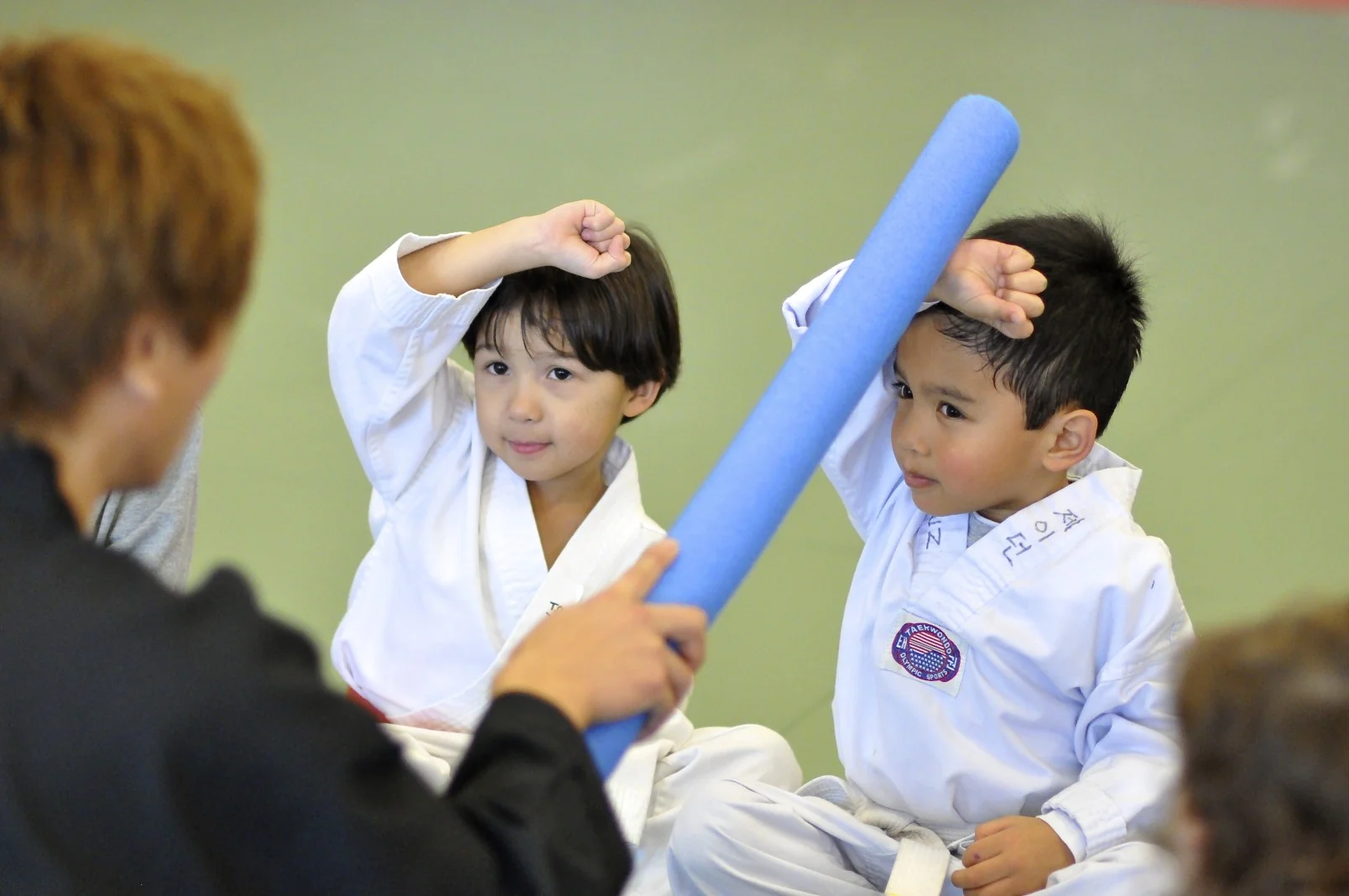 Jayden and Conner practicing their blocks with their Tae Kwon Do instructor. Take note of this photo, I accidentally left the ISO at a whopping 2500. It was unnecessary in my mind, since there was great light coming into the dojo. Can you notice the noise effect it created with the objects that are up close? I post processed a little to remove the noise, but I think it's still noticeable.